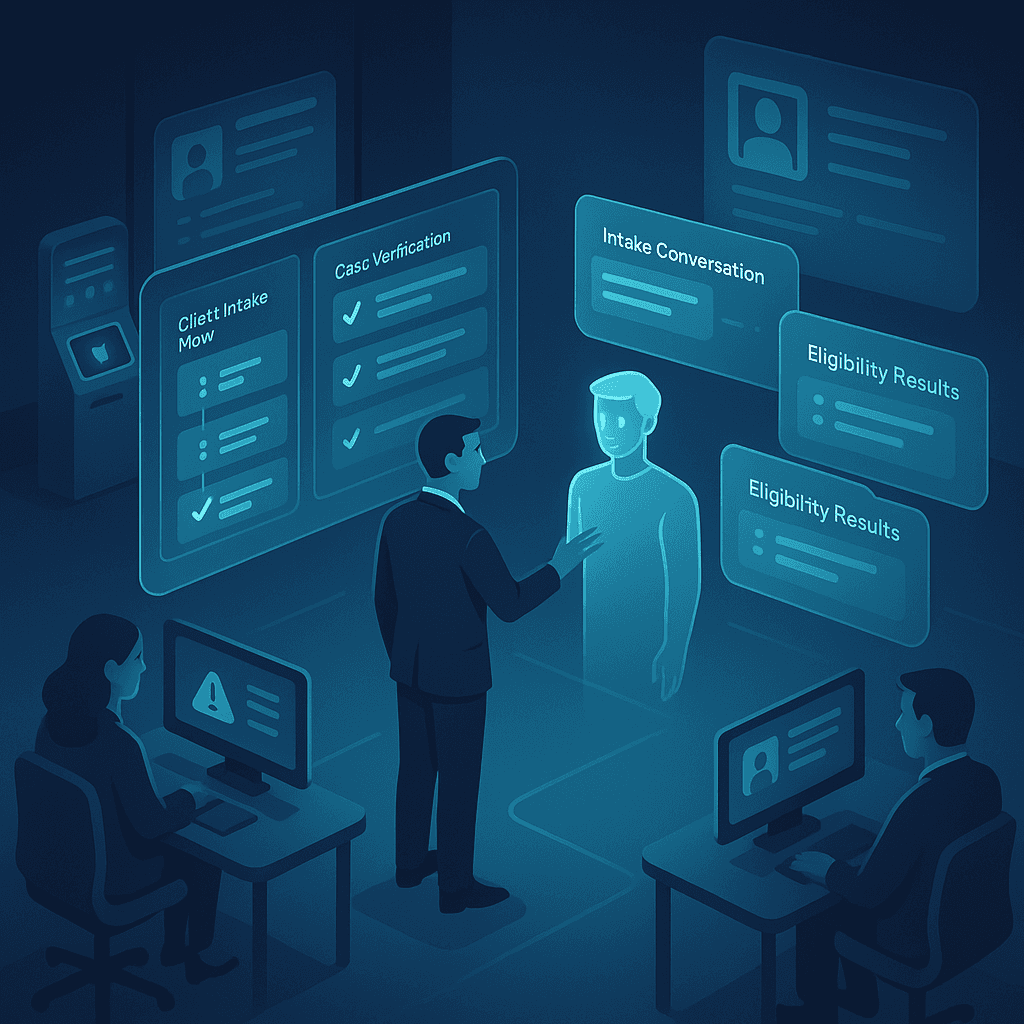 Embedded Eligibility Screening: Rules-based AI instantly cross-references client data with up-to-date eligibility tables, verifying qualification or routing out-of-scope cases for appropriate action.