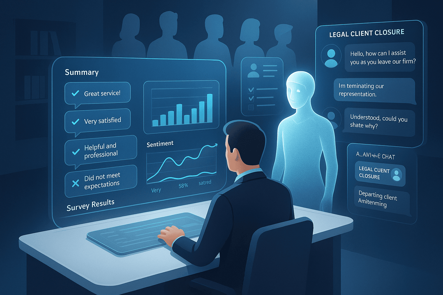Keywords: client departure survey legal AI, legal client exit interview AI