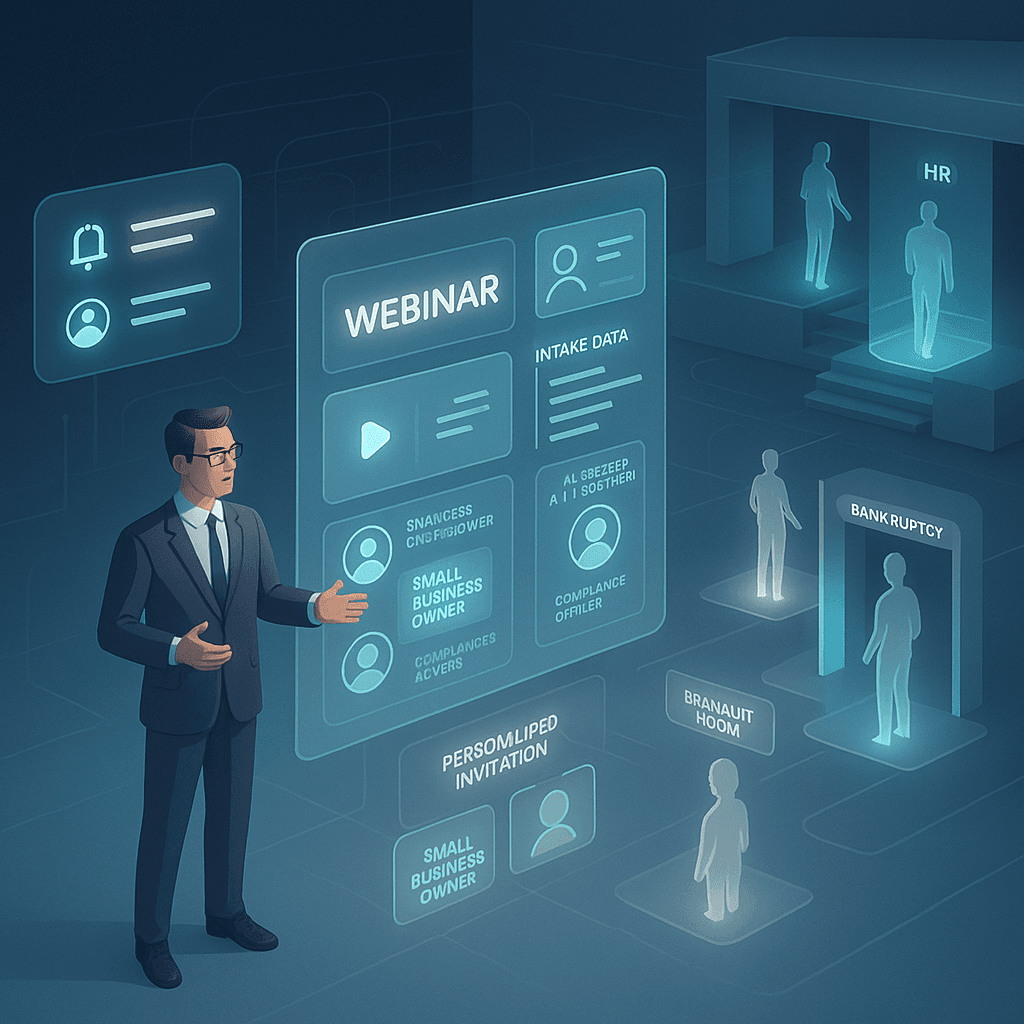 Topic Curation: When intake data shows a registrant is concerned with bankruptcy law, they receive invitations crafted for bankruptcy Q&A sessions or recent legislative updates.